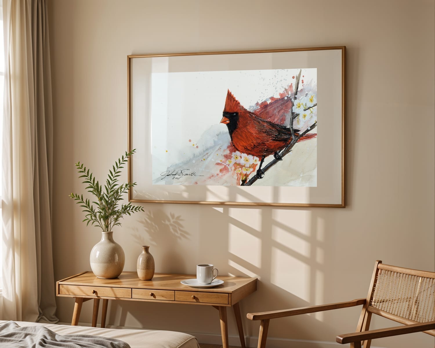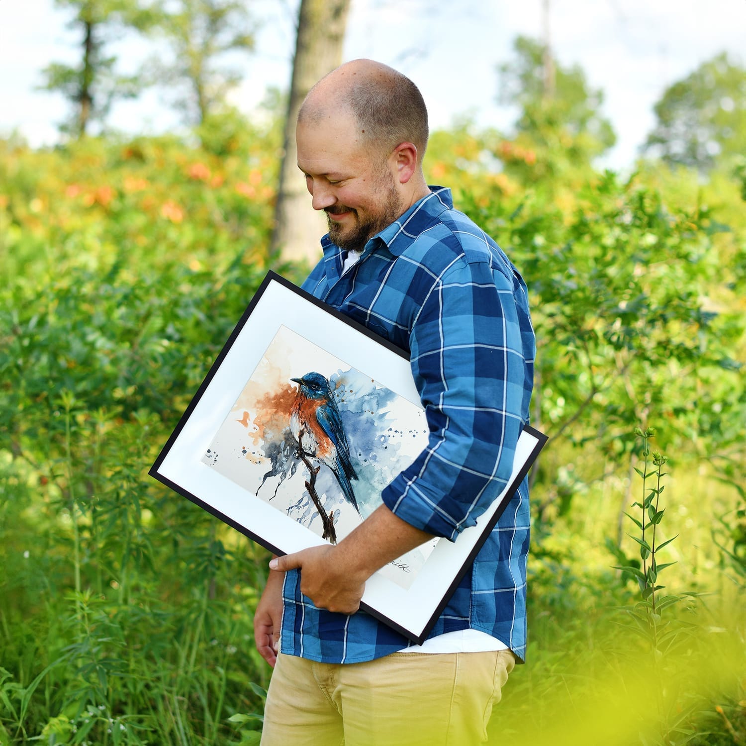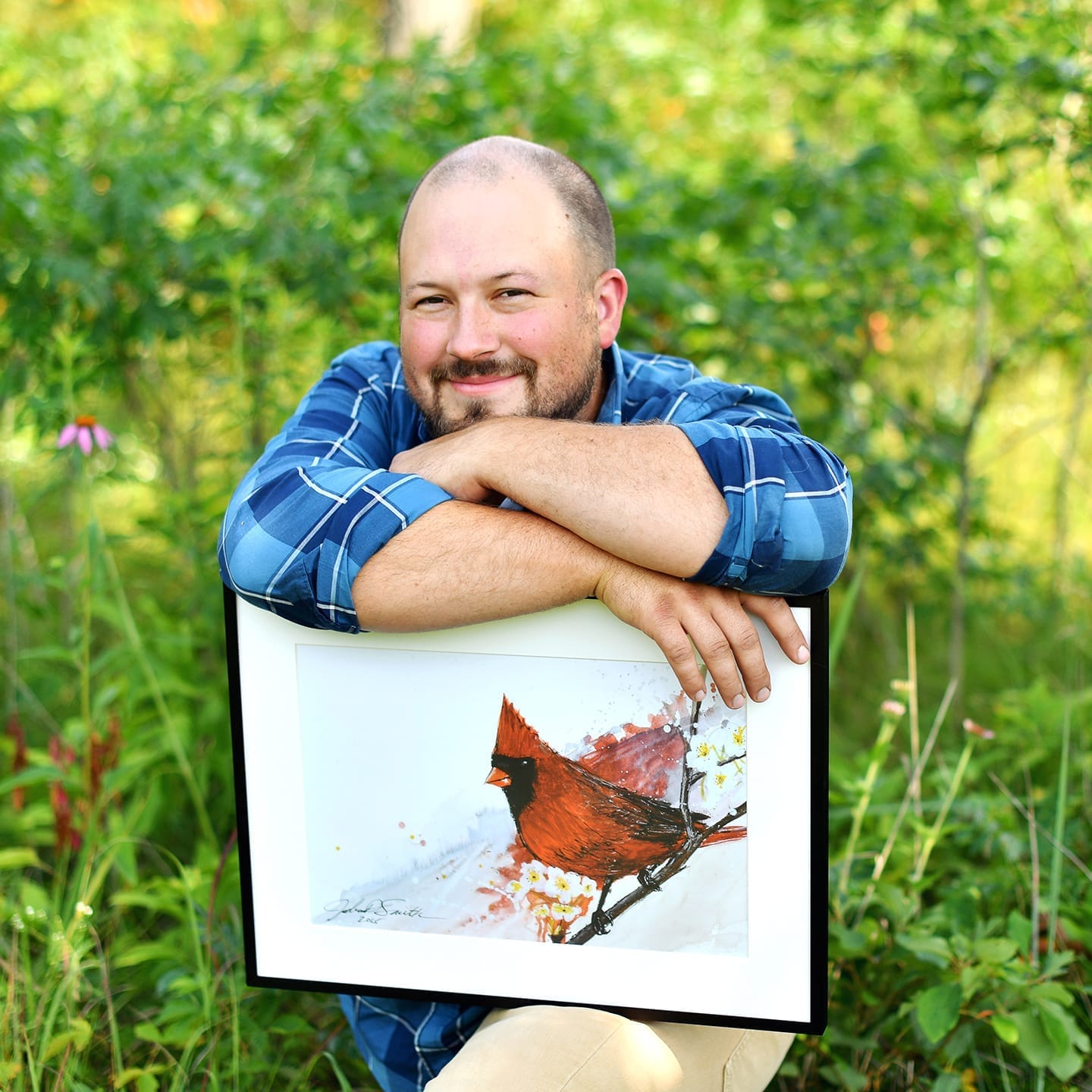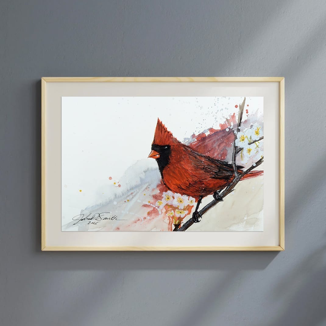"I love Joshua's artwork, I have several pieces in our home. His bird paintings are beautiful, and the cardinal one is my favorite! They are full of color, and feeling, and remind us of the beauty every time we see them!"